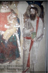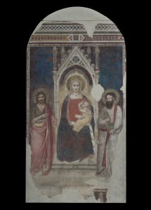 La pittura murale raffigurante la “Madonna del latte” con Bambino in trono tra San Giovanni e San Bartolomeo fu dipinta nel 1365 – 1370 dal Maestro della Cappella Rinuccini.